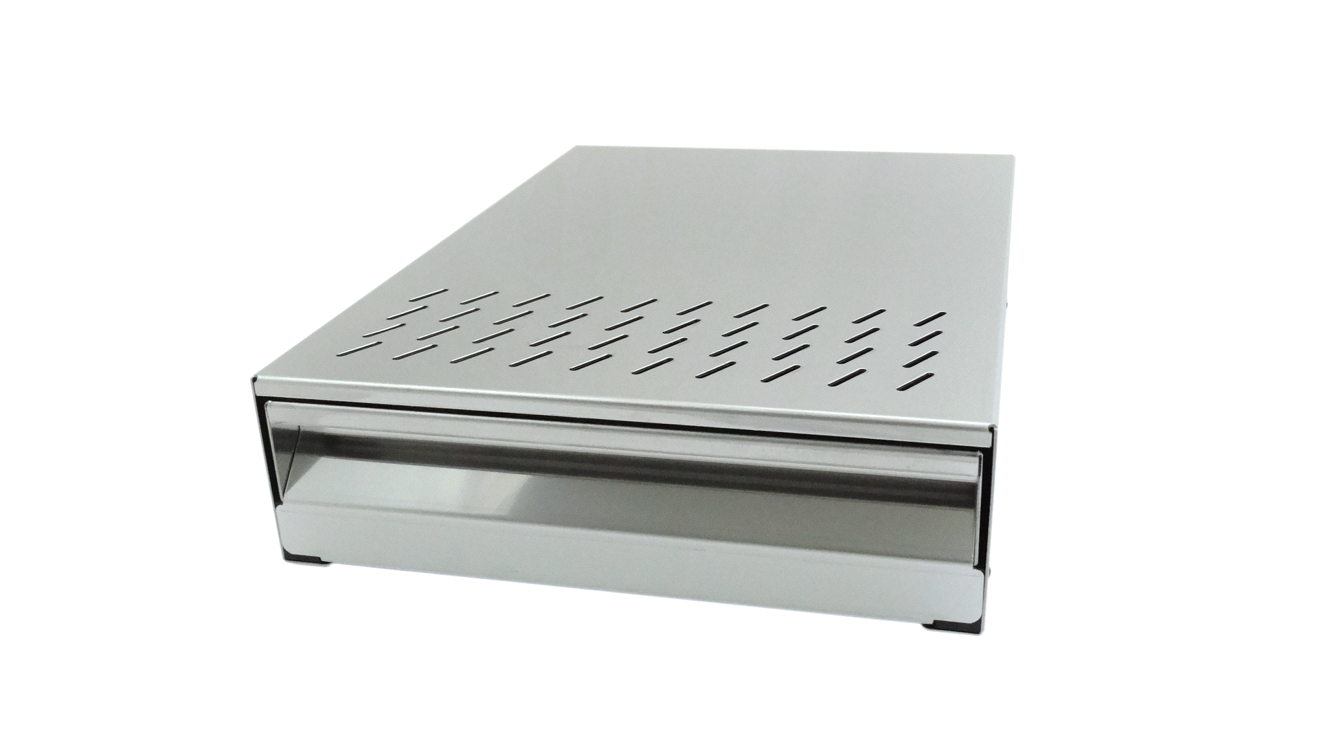 Hochwertige Gastro Ausklopfschublade, die platzsparend unter die Mühle gestellt wird.