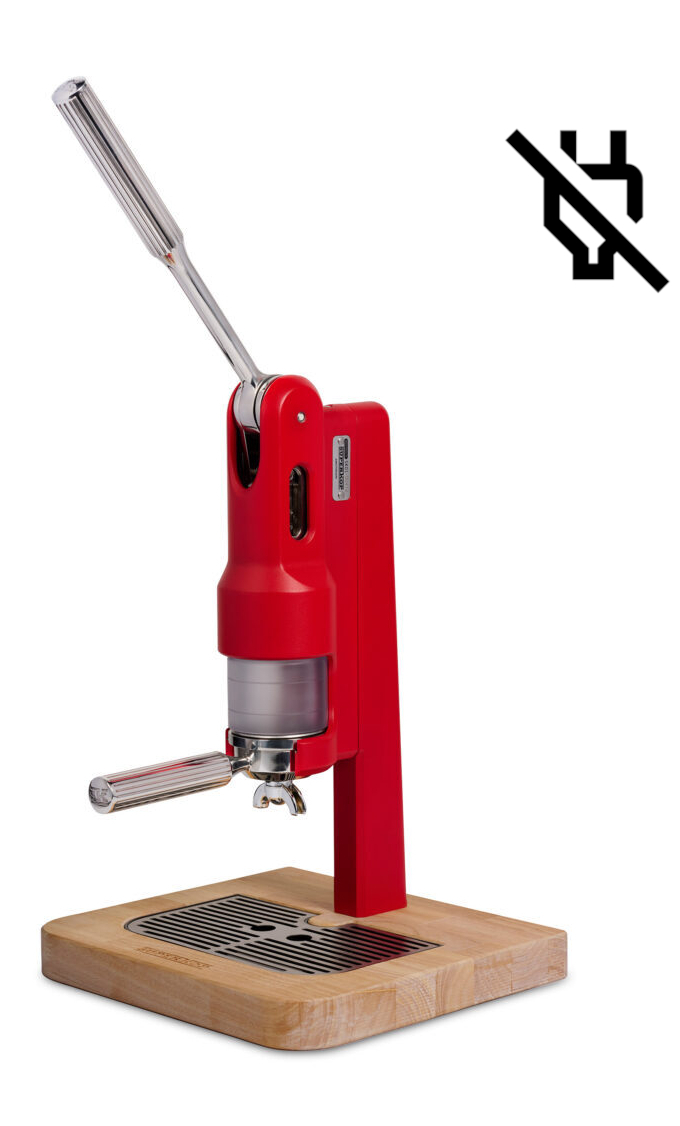 Superkop is a super simple, minimal espresso machine. Grind coffee, add hot water, pull the lever, done!