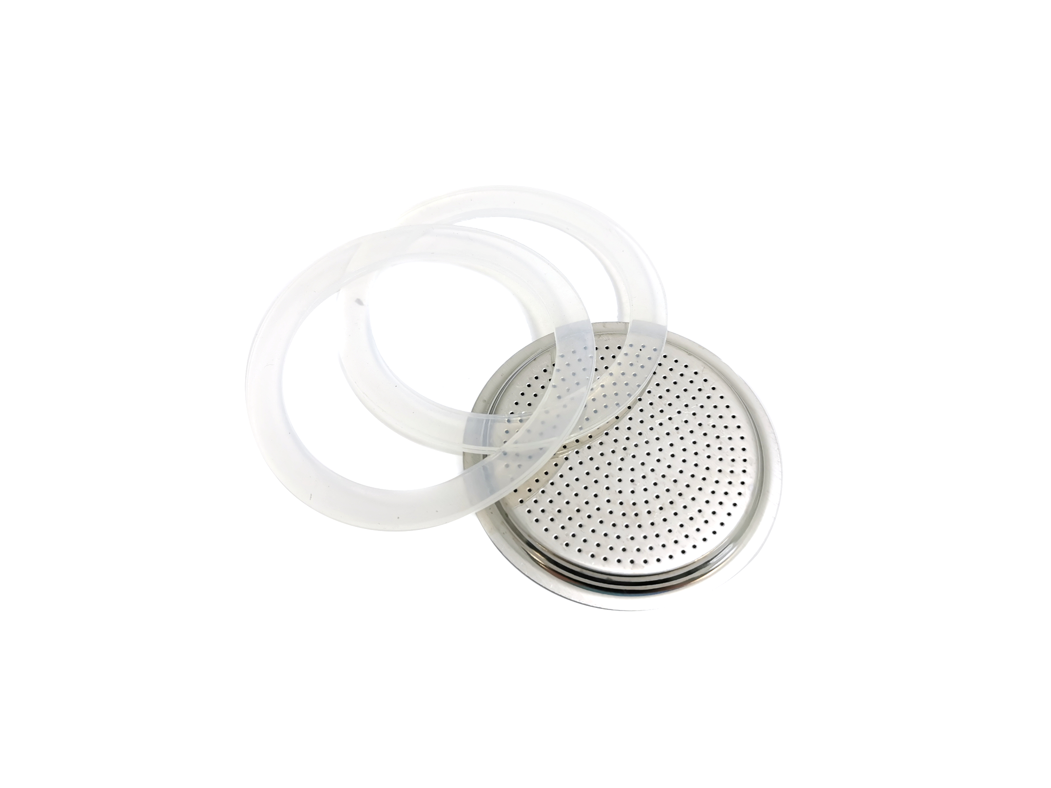 Set mit 2x Ersatz Gummidichtung und 1x Ersatz Metallsieb für 6er-Grösse Espressokocher "Slancio" und "Omnia".