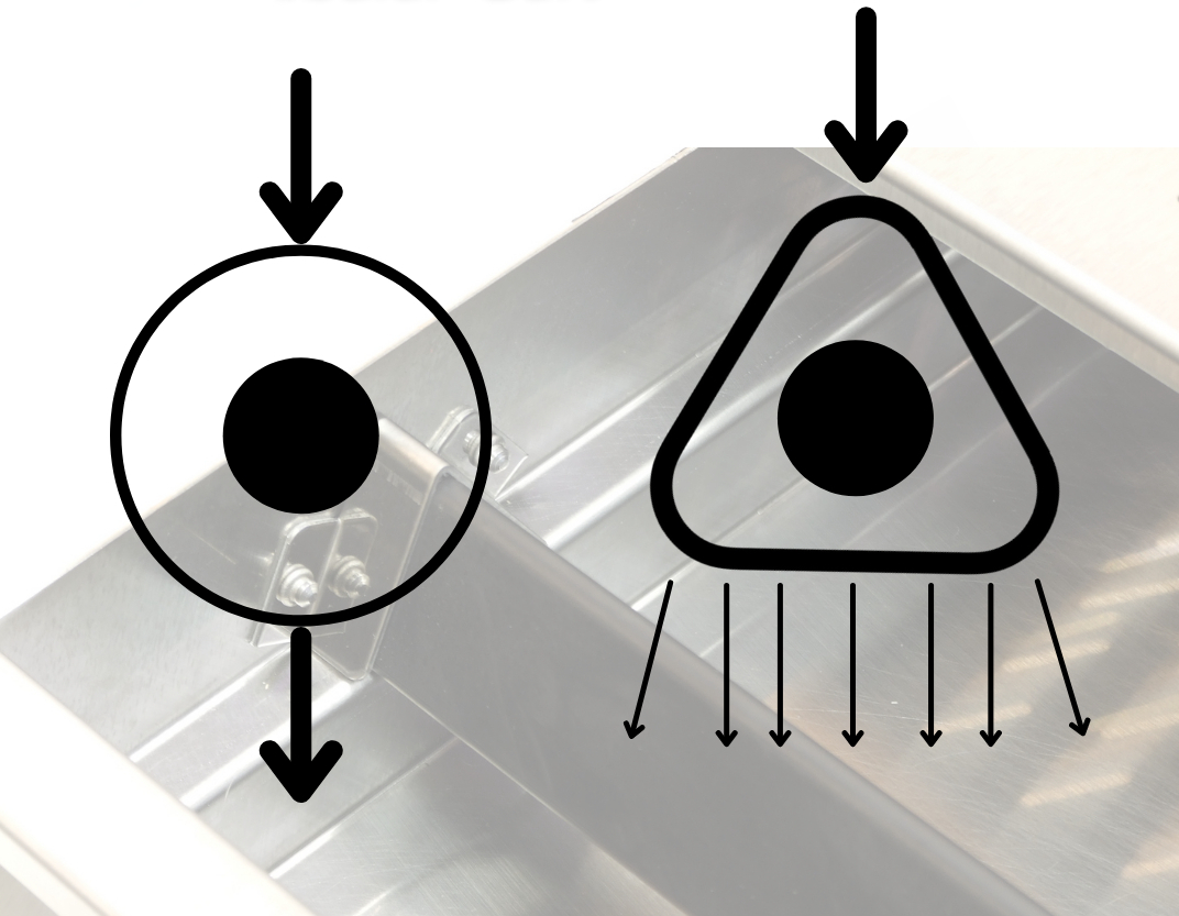 Einzigartige, dreieckige Ausklopfstange für mehr Langlebigkeit: Im Gegensatz zu runden Stangen wird die Kraft auf einer grösseren Fläche absorbiert, was zu weniger Verschleiss führt.
